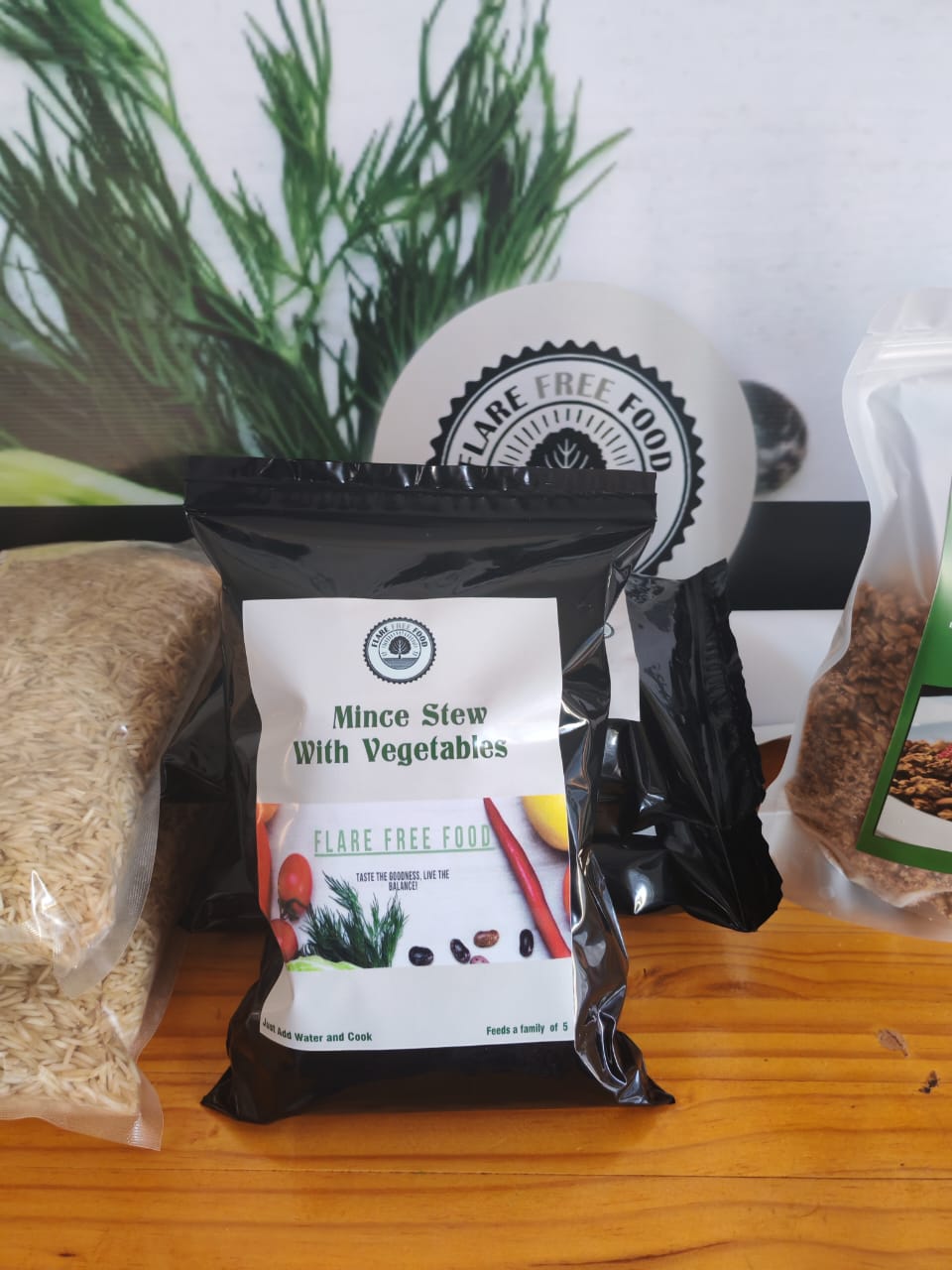 500g Plant Based Mince Stew Added with dehydrated vegetables and authentic nonirradiated hebs and spices,No MSG added and no Wheat and gluten added. Included is 3 packs of tasty seasoned soya mince Sachet and 1 pack of dehydrated whole peas. Each sachet servces 5 people.Cooking Made easy.Just add water and cook.